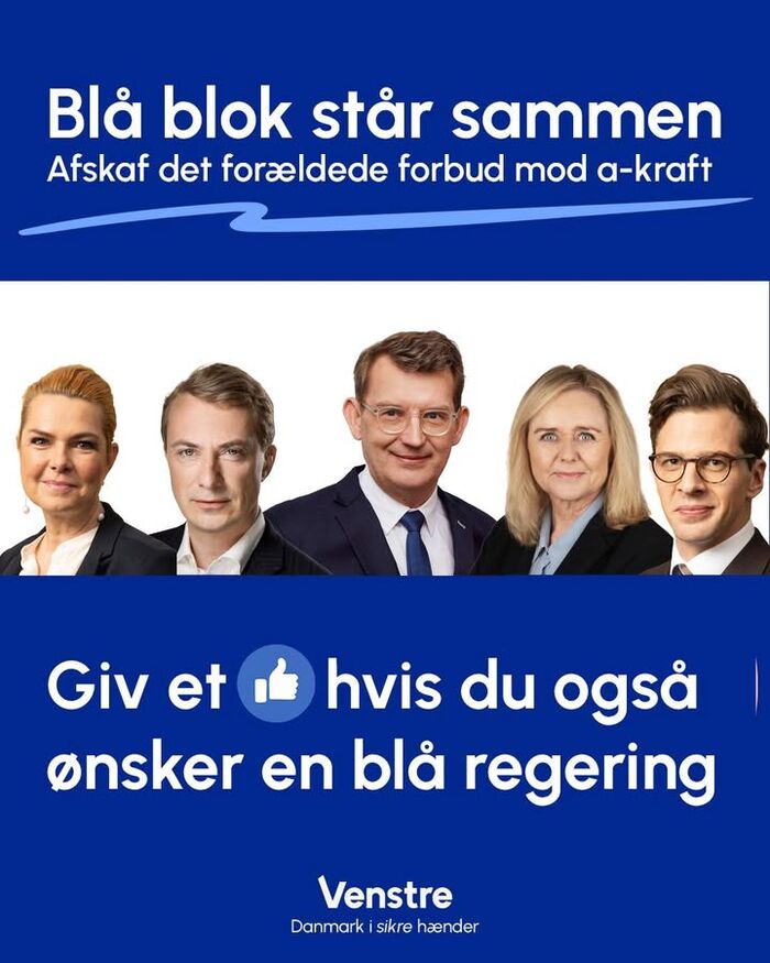Ja tak! 👍 De blå partier er enige om at afskaffe det forældede forbud mod a-kraft 💙